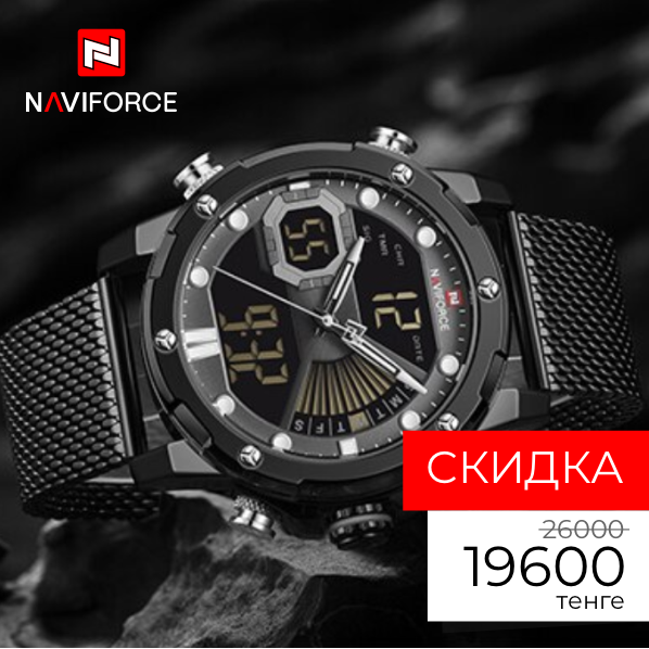 Новинка 2020 года! Роскошные, брутальные, спортивные часы NAVIFORCE. Корпус сделан из особого сплава, благодаря чему часы, очень легкие для своего размера. HARDLEX — стекло устойчивое к царапинам. Очень удобный браслет — миланская петля, сочетает в себе гибкость и прочность. Высокая степень влагозащиты. Стальная защитная рамка дисплея.
